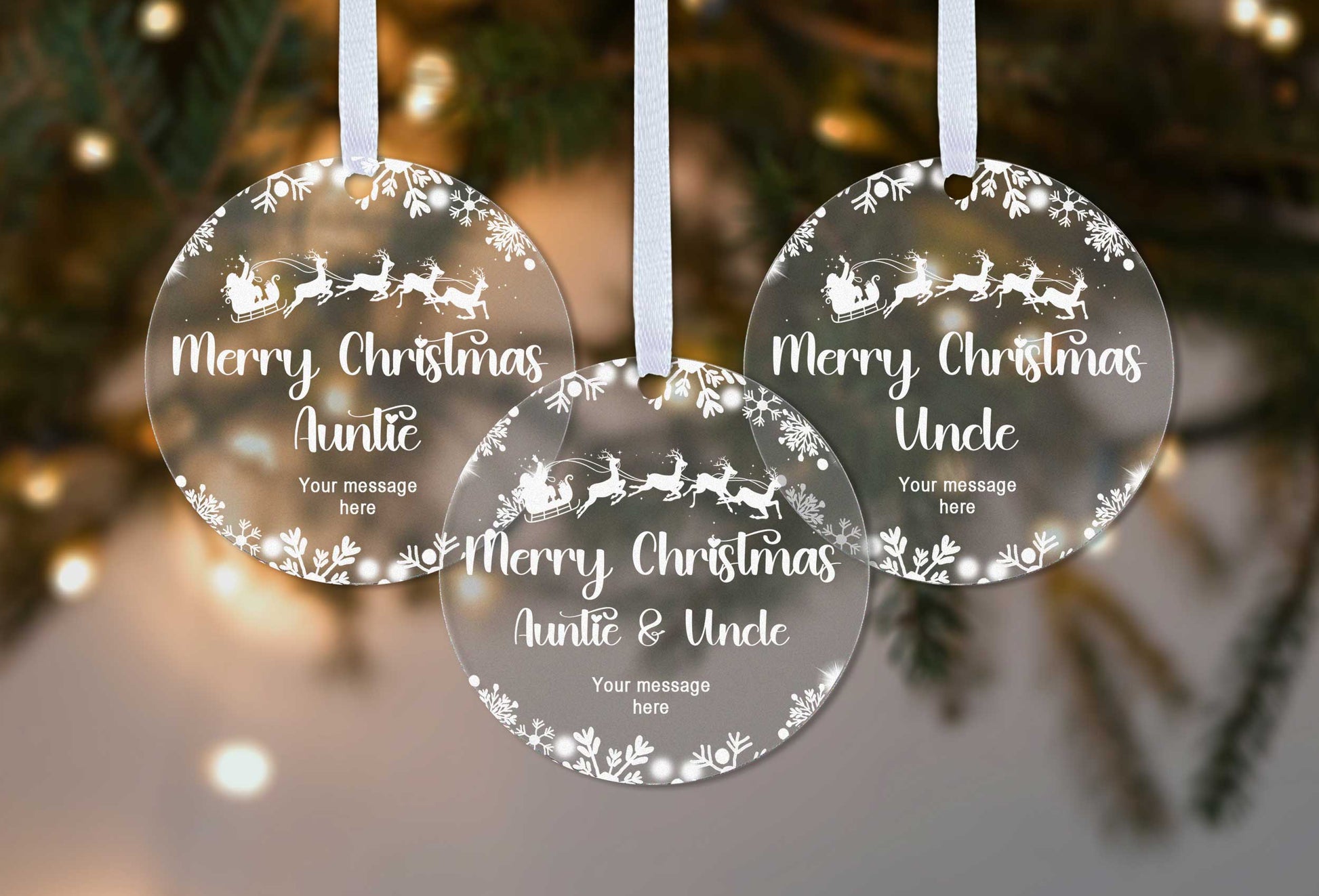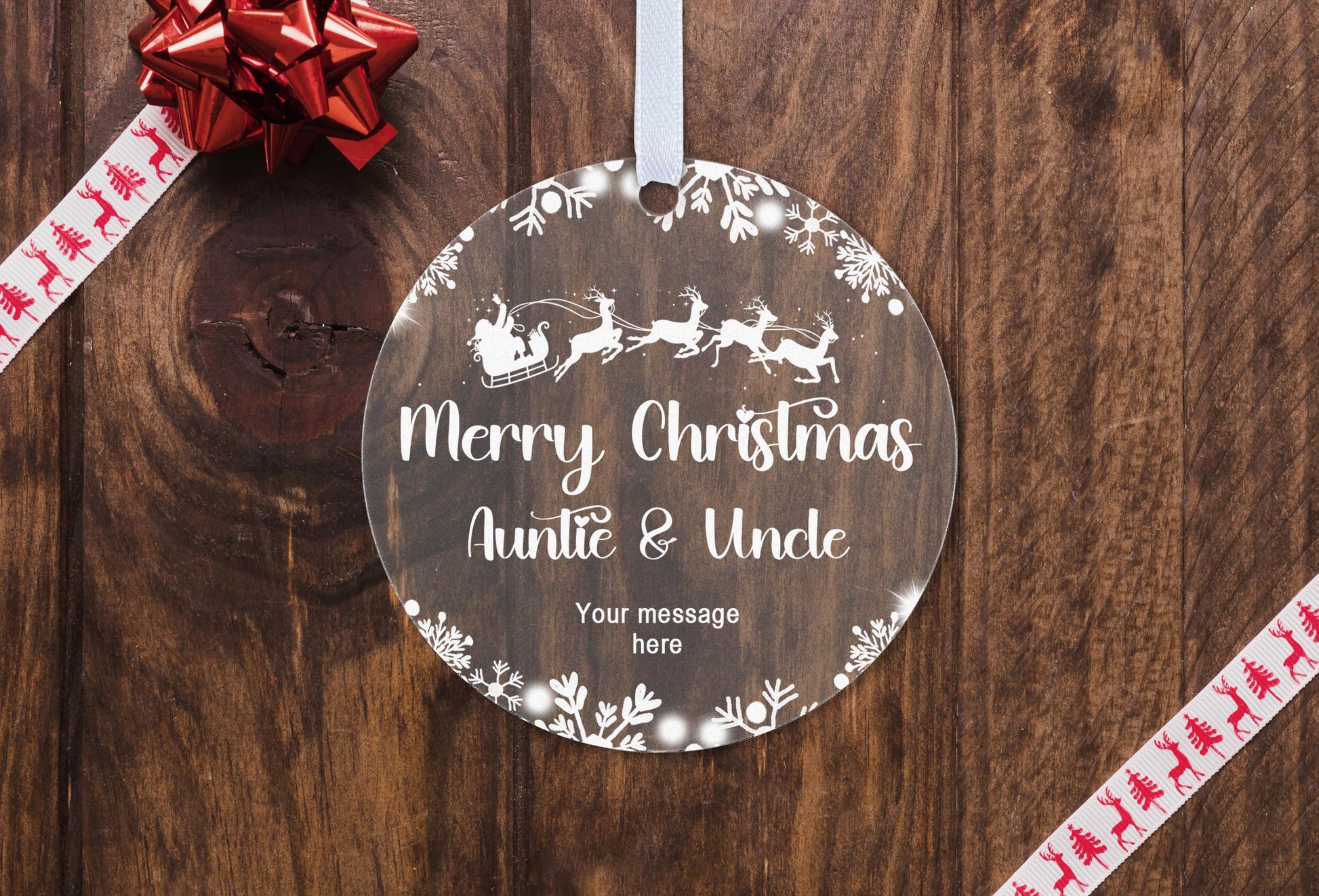 Auntie Uncle Christmas 2025 Snow Gift Boxed Personalised Xmas Bauble Tree Decoration