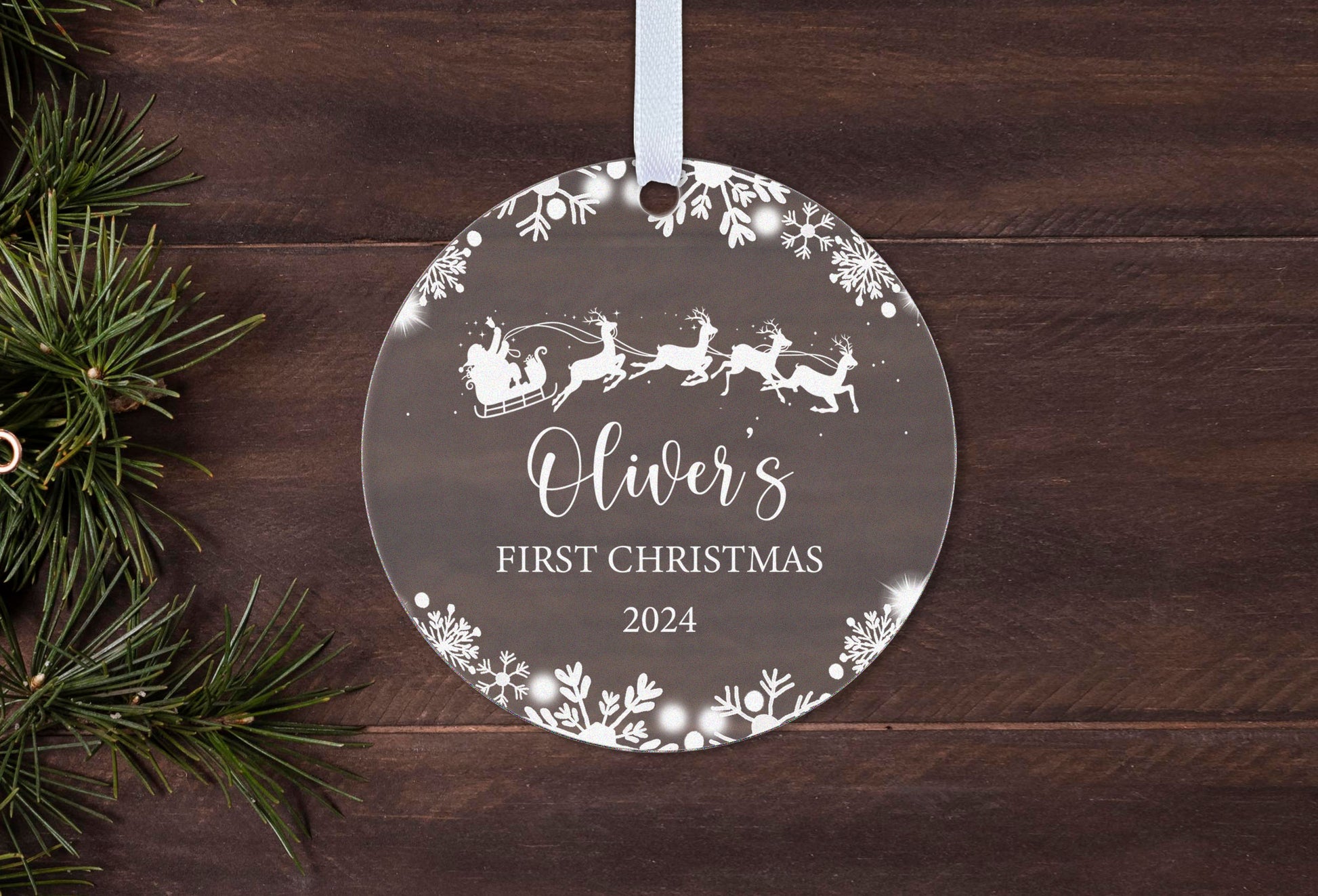 Babies First Christmas Santa & Snow Gift Boxed Personalised Xmas Bauble Tree Decoration