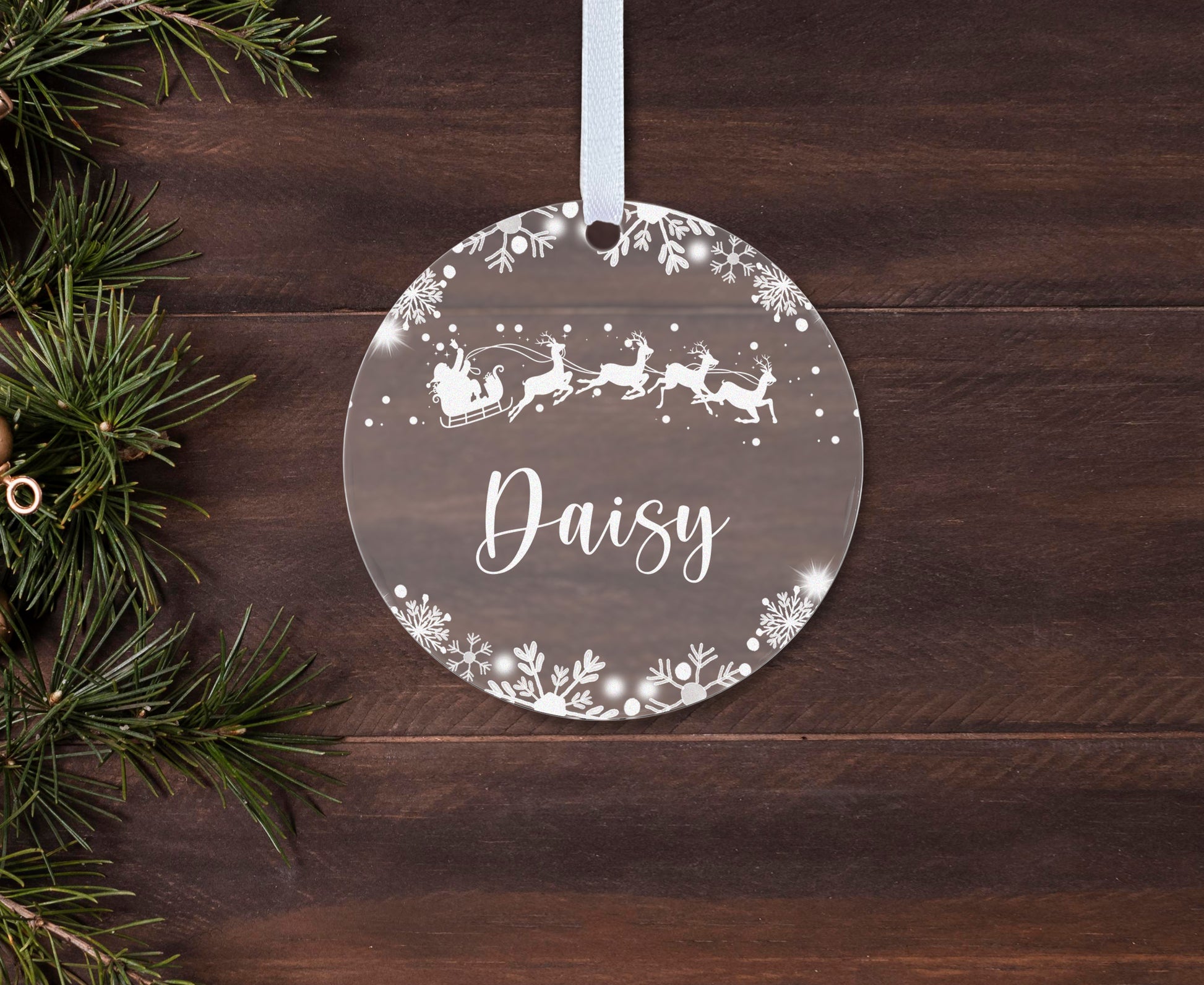 Children's Name, Santa & Snow Christmas Gift Boxed Personalised Xmas Bauble Tree Decoration