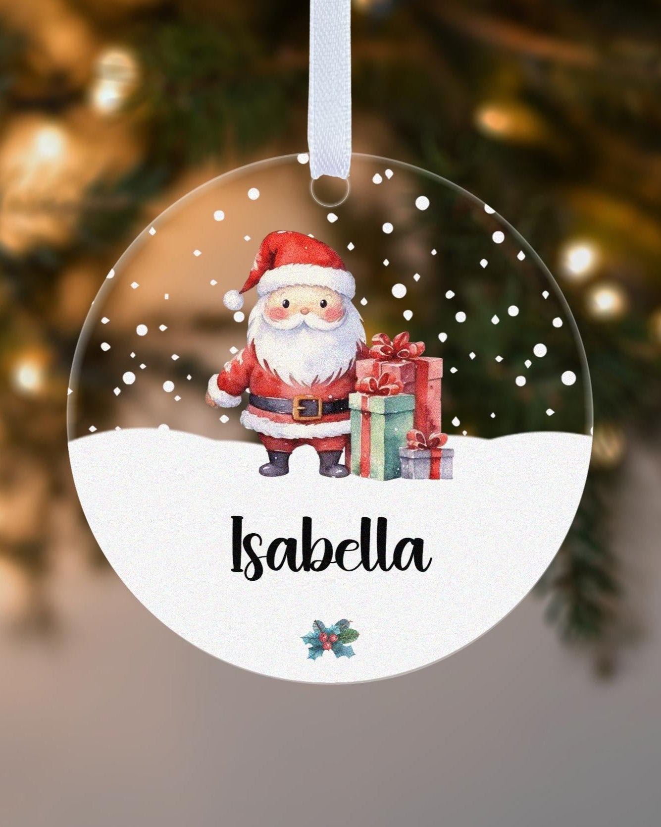 Children Name Santa Illustrated Gift Boxed Personalised Xmas Bauble Tree Decoration