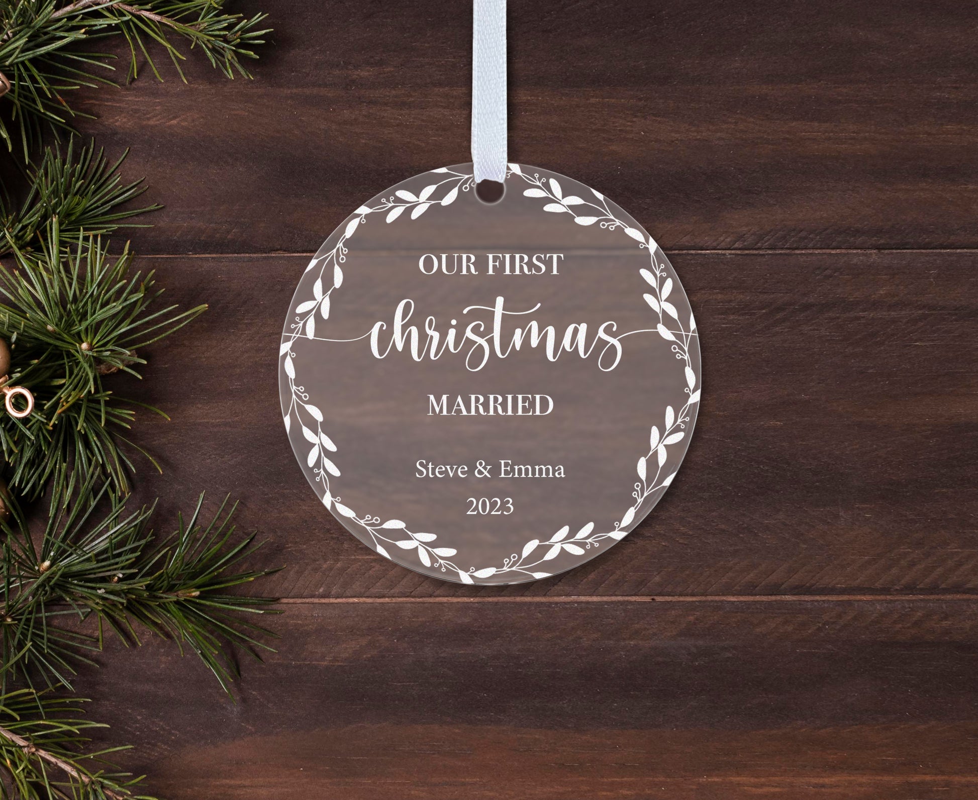 Couple First Christmas Married Floral Gift Boxed Personalised Xmas Bauble Tree Decoration