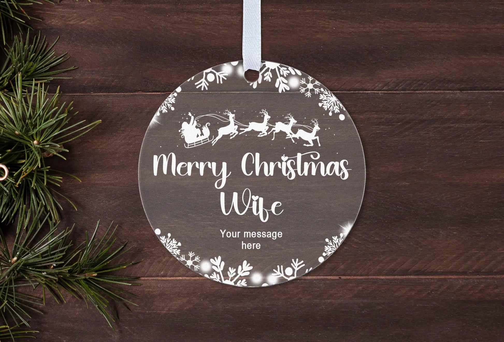 Ideal for personalising with a custom recipient and message, this bauble ornament will be a cherished keepsake for years to come. Change the text husband/wife to any text to personalise it for your loved one.