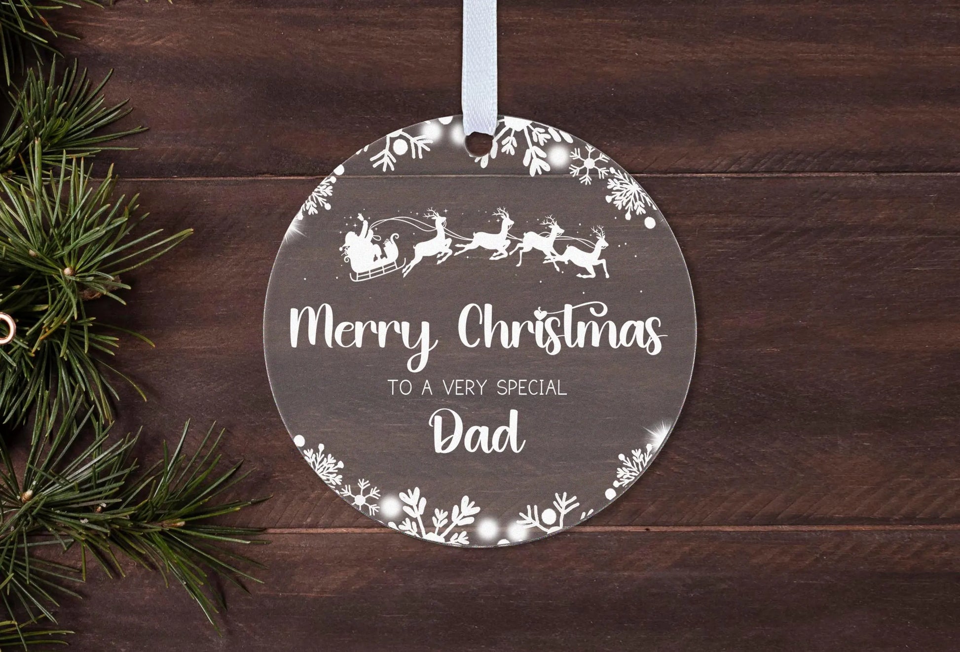 Introducing our elegant Xmas bauble ornament, crafted from high quality Perspex and measuring 80mm x 80mm. This beautifully subtle piece is perfect for adding a touch of sophistication to your home décor. It comes adorned with a delicate white ribbon, making it ready to hang, and can be thoughtfully presented in a gift box, making it a perfect gift for any occasion.