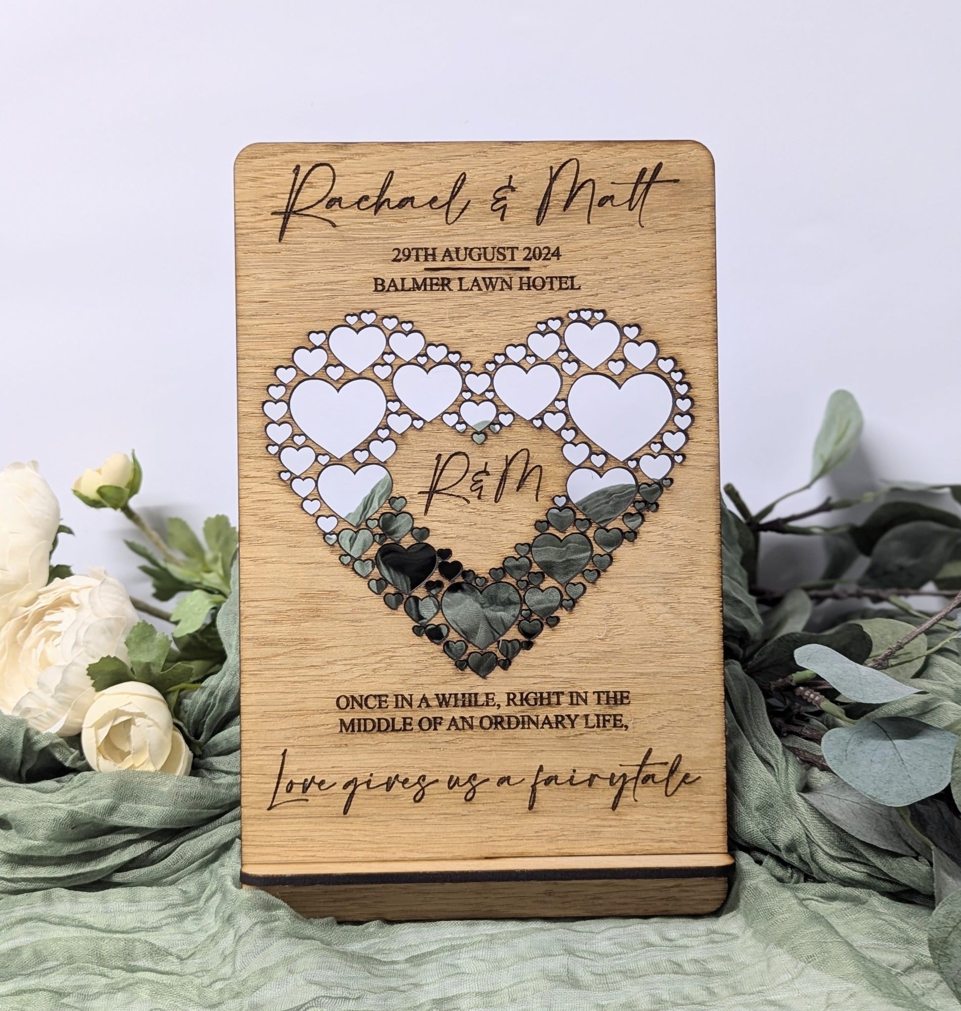 Elevate your wedding décor with our Heart Wedding Sign Gift. This personalised heart-shaped oak sign exudes elegance and adds a unique touch to your special day. Crafted with care and attention to detail, it's the perfect keepsake for a truly memorable occasion.
