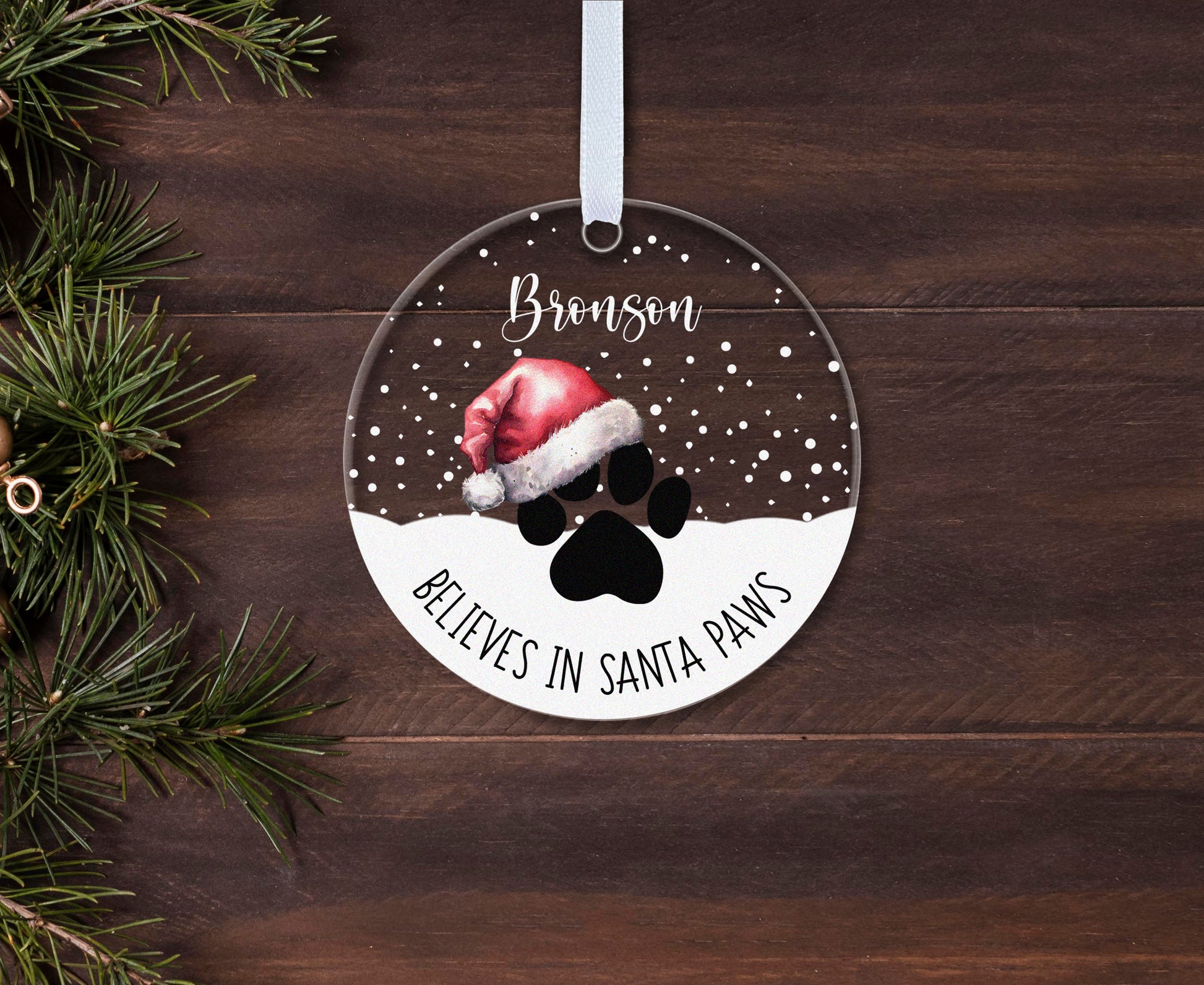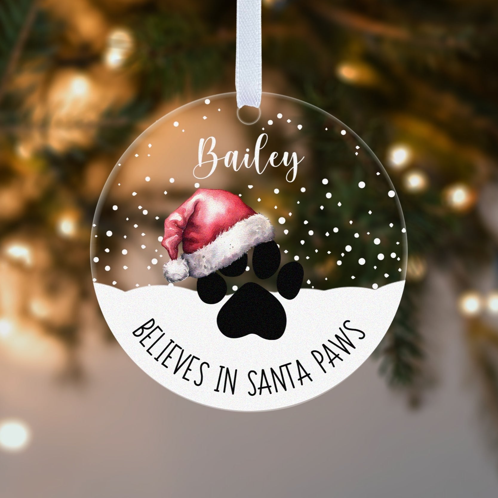 Pet Paw Print Santa Hat Illustrated Christmas Gift Boxed Personalised Xmas Bauble Tree Decoration