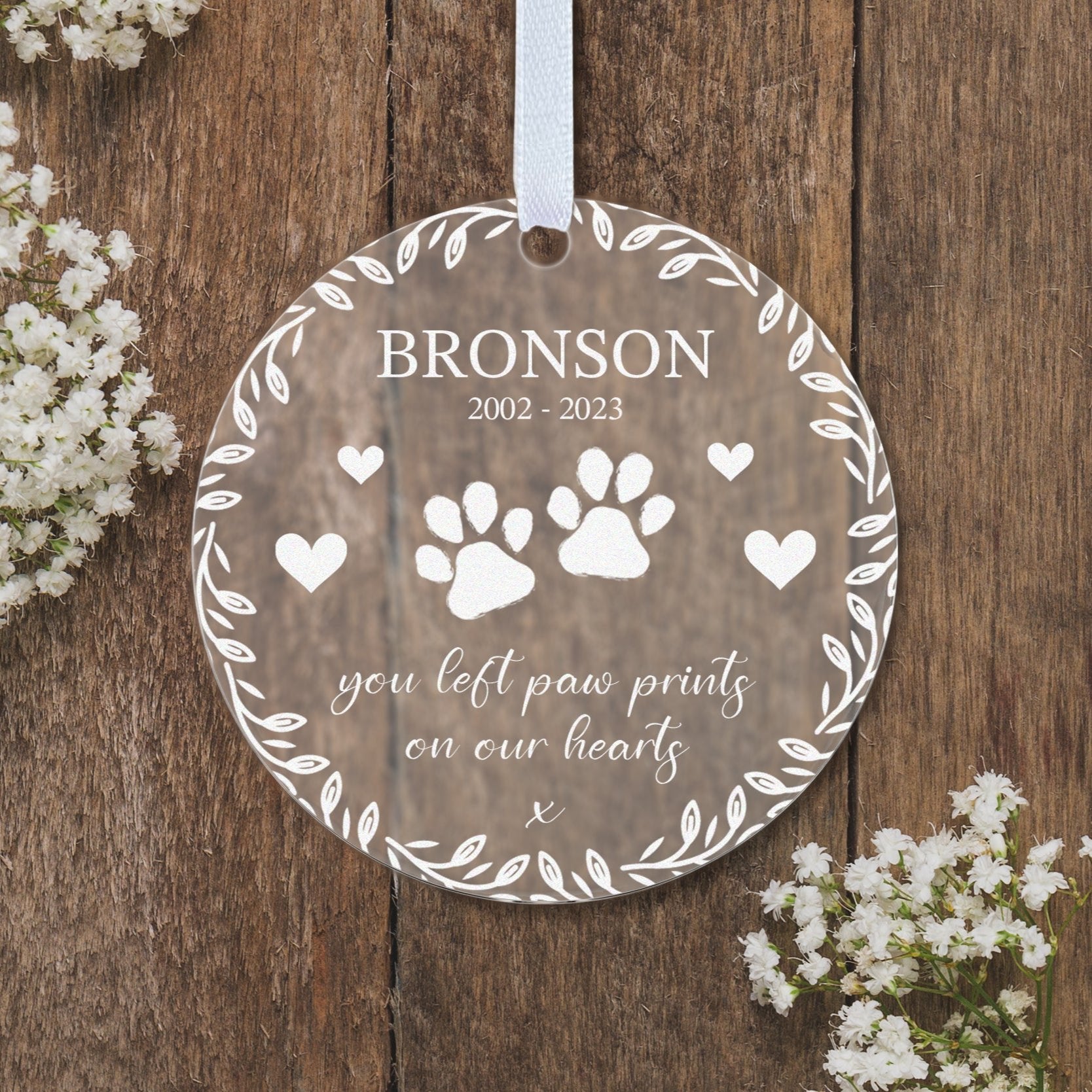 Pet Paw Prints on our Hearts Memorial Loss Gift Boxed Personalised Bauble Tree Decoration