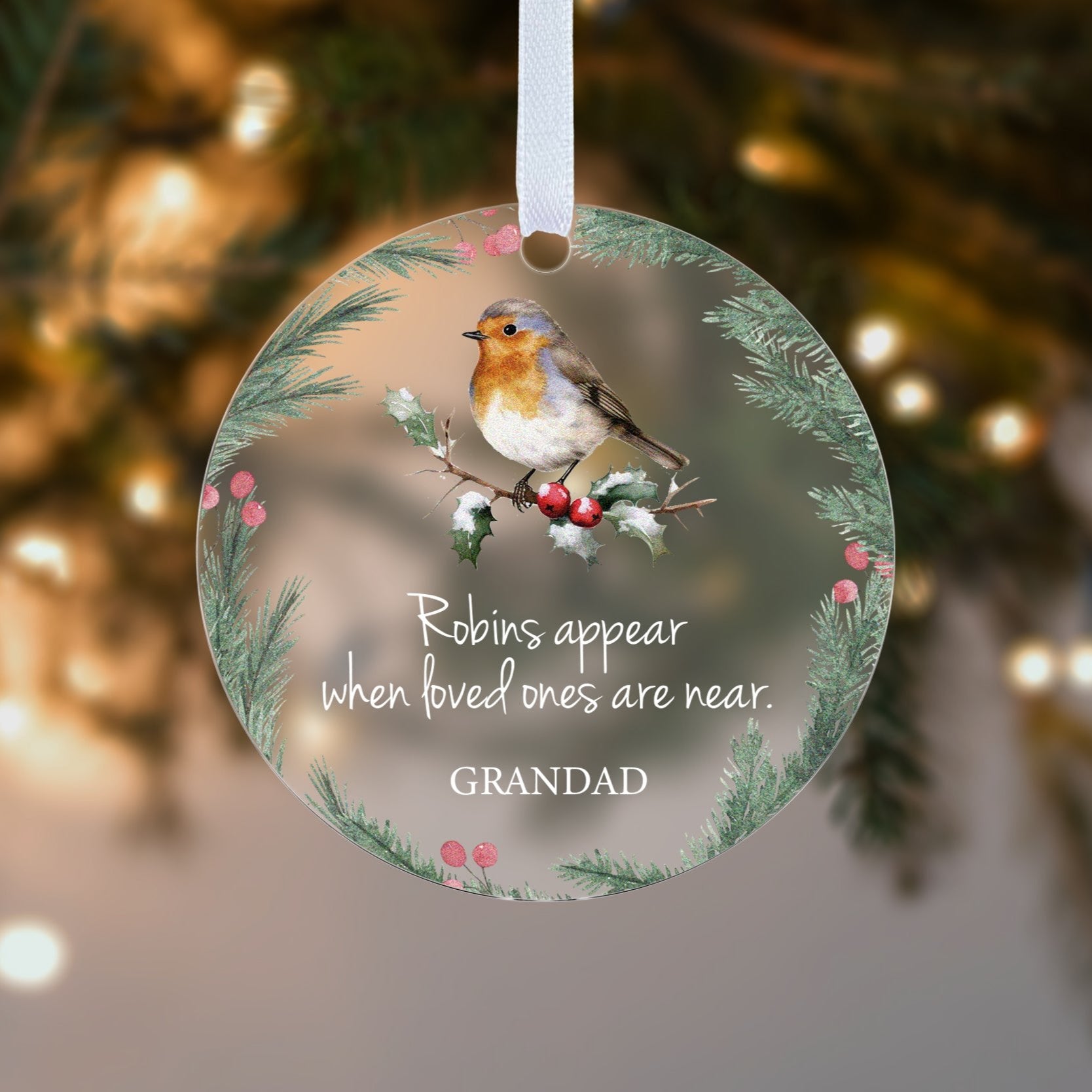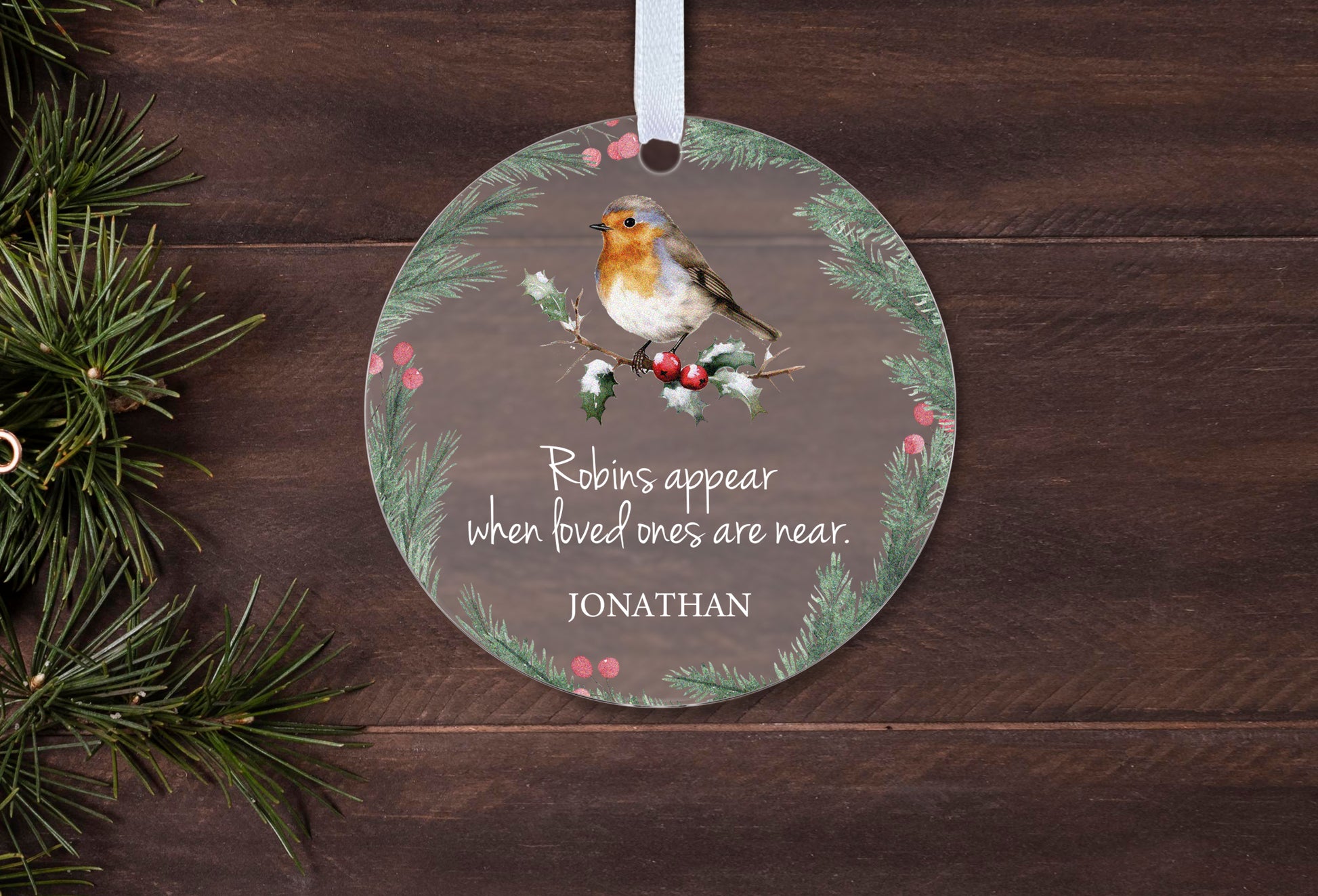 Personalised Robins Appear Illustration Christmas Memorial Loss of a Loved One Gift Boxed Christmas Bauble Tree Decoration
